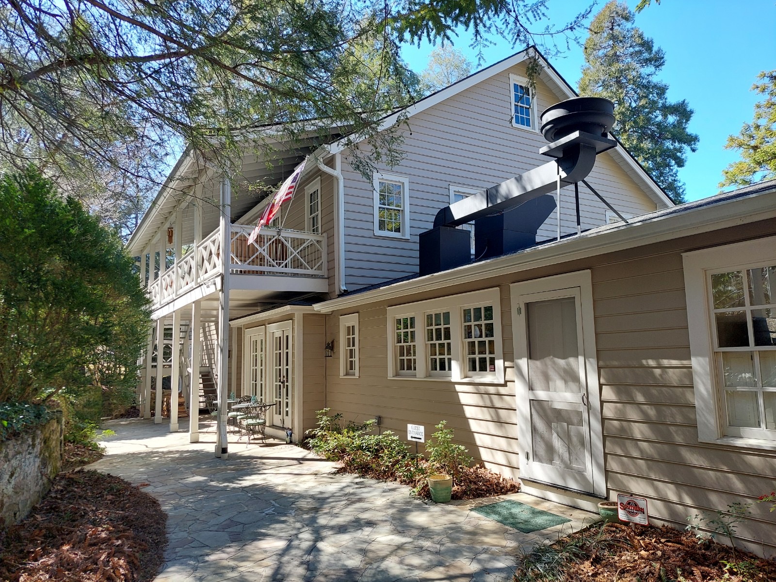 Ivy Terrace has seven guest bedrooms, each with their own bathroom, and is meticulously cared for. This beautiful home also includes a living room anchored by a massive stone fireplace, and a dining room for hands-on culinary instruction and meals, right off a commercial kitchen.