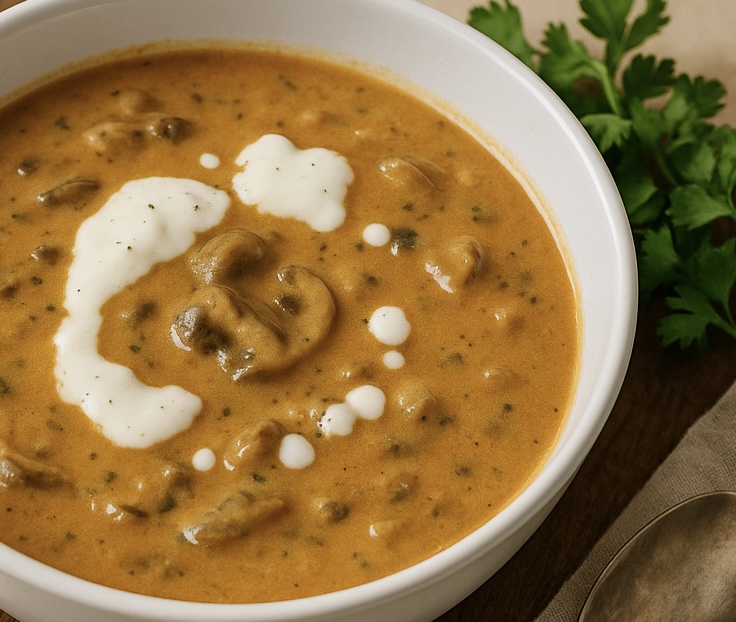 Cozy, velvety Hungarian-style mushroom soup with paprika, dill, and thyme, deepened with tomato paste and tamari, and finished with silky cashew cream. Earthy, comforting, and curl-up-with-a-bowl good.
